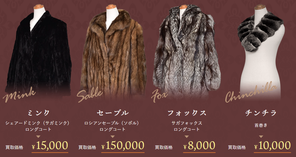 - 希少性の高いチンチラやセーブルは特に高価買取が期待できます。中でも、毛質が柔らかいメスの毛皮は需要が高い傾向があります。
